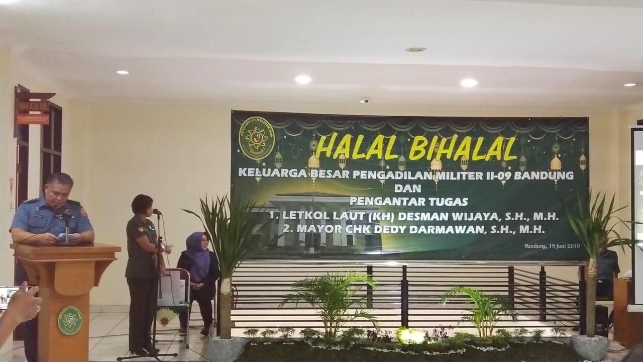 Letkol Laut (KH) Desman Wijaya, S.H., M.H. mendapatkan Promosi Jabatan ke Pengadilan Militer III-18 Ambon, dilepas bersama dipimpin oleh Kadilmil II-09 Bandung, Kolonel Chk (K) Nanik Suwarni, S.H., M.H. pada acara sekaligus Halal Bihalal dan Pengantar Tugas Letkol Laut (KH) Desman Wijaya, S.H., M.H., pada Hari Rabu tanggal 19 Juni 2018 di Aula Kantor Pengadilan Militer II-09 Bandung. etkol Laut (KH) Desman Wijaya, S.H., M.H. , adalah sosok Hakim Militer yang berdedikasi, berintegritas, bertanggung jawab, ramah dan rendah hati, beliau patut menjadi teladan bagi kita yang terus harus menjalankan tugas dan amanah di Pengadilan Militer II-09 Bandung. Selamat Bertugas kepada etkol Laut (KH) Desman Wijaya, S.H., M.H. , hanya doa yang bisa kami panjatkan ke hadirat Allah Azza wa Jalla, semoga Bapak dan keluarga senantiasa Allah Azza wa Jalla berikan kekuatan, beribu kebaikan, kesehatan, keselamatan, panjang umur dalam setiap melaksanakan tugas dan selalu berbahagia dengan keluarga.