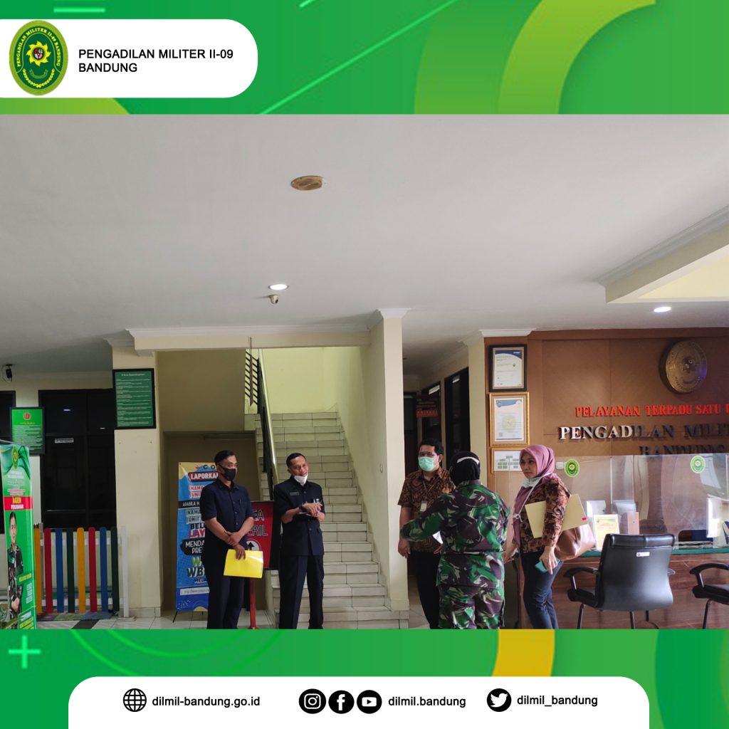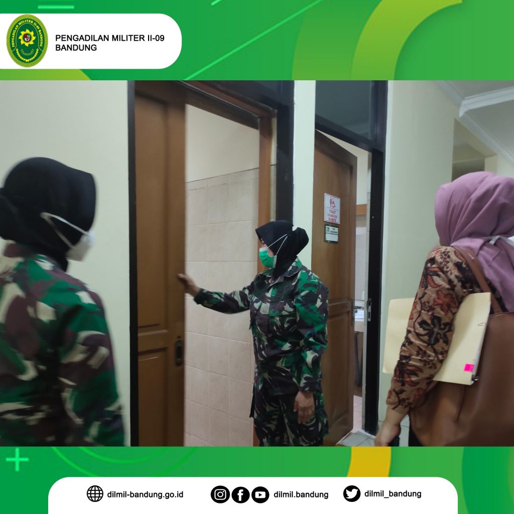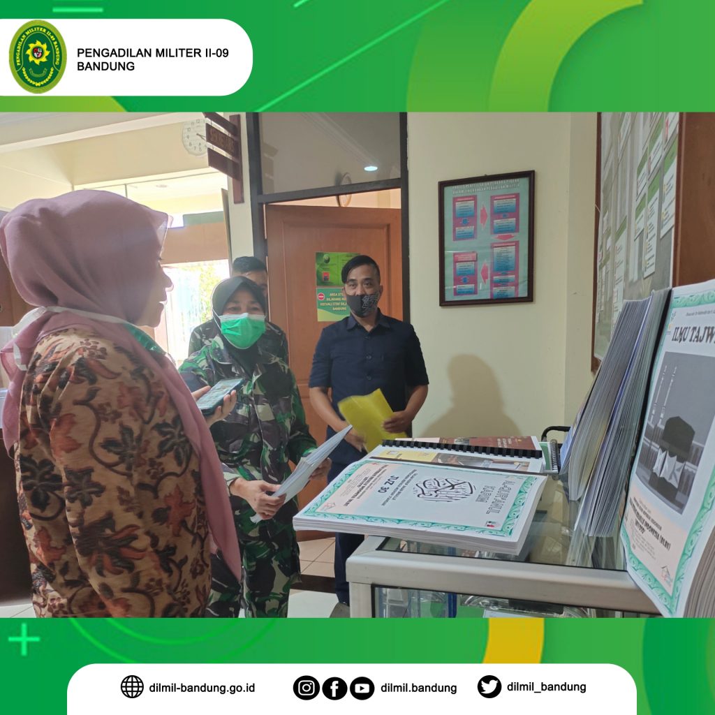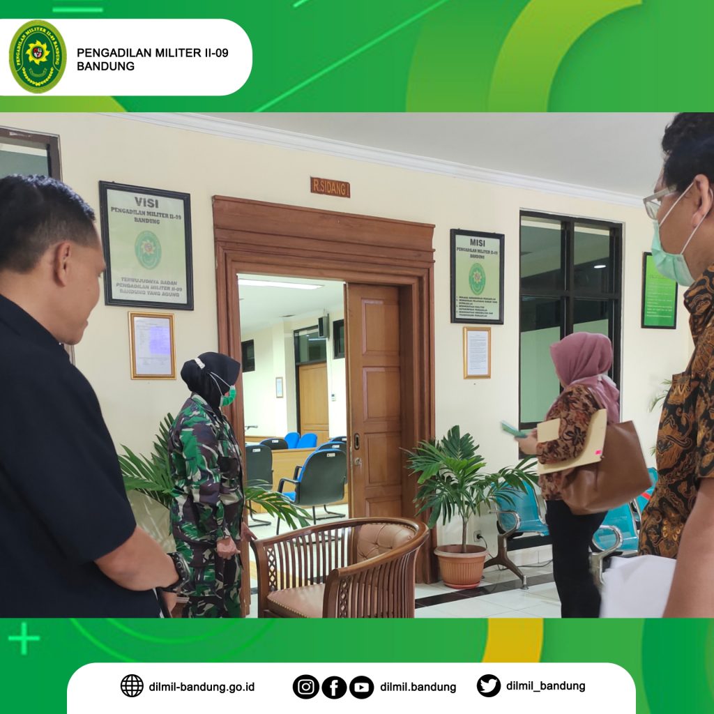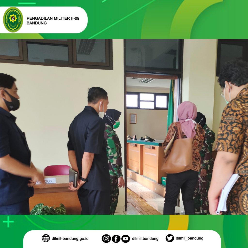 Sehubungan dengan DIPA BUA Tahun Anggaran 2021 dan Surat Sekretaris Mahkamah Agung RI Nomor : 164/SEK/OT.01.1/01/2021 tanggal 27 Januari 2021 tentang Petunjuk Pengadaan Sarana Pelayanan Peradilan Penyandang Terhadap Penyandang Disabilitas. Pada hari Kamis tanggal 9 April 2021, Biro Perencanaan dan Organisasi Mahkamah Agung RI melaksanakan monitoring dan evaluasi pengadaan sarana dan prasarana tersebut ke Pengadilan Militer II-09 Bandung. Tim dari Biro Perencanaan dan Organisasi Mahkamah Agung RI disambut baik oleh Kadilmil II-09 Bandung Kolonel Chk (K) Nanik Suwarni, S.H., M.H. dan berkeliling di lingkungan Dilmil Bandung melihat capaian output kegiatan yang dihasilkan. (Admin)