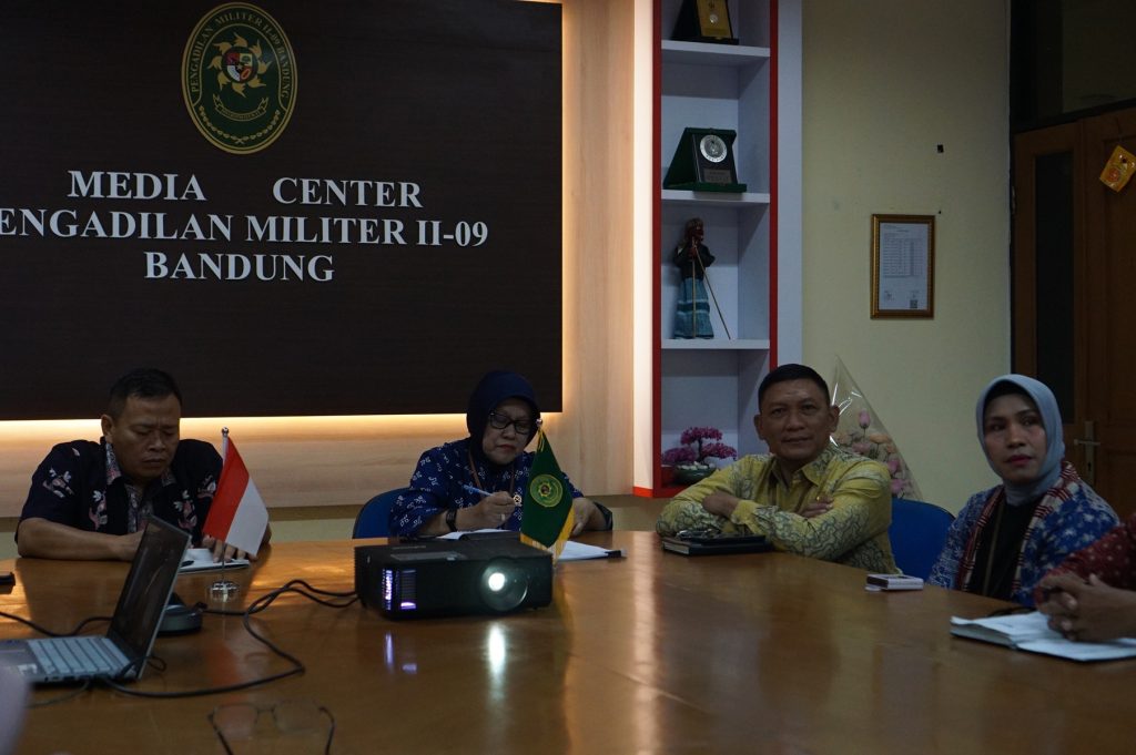 Plh Wakil Kepala Pengadilan Militer II-09 Bandung beserta Para Anggota Pokkimmil, Panitera, Sekretaris, Panitera Muda, Para Panitera Pengganti, para Kasubbag, Pelaksana dan PPNPN pada Pengadilan Militer II-09 Bandung mengikuti acara Pembekalan Tahap IV Sistem Manajemen Anti Penyuapan (SMAP) tahun 2025 oleh Badan Pengawasan mahkamah Agung Republik Indonesia secara daring pada Pukul 08.30 WIB di Ruang Media Center Pengadilan Militer II-09 Bandung.