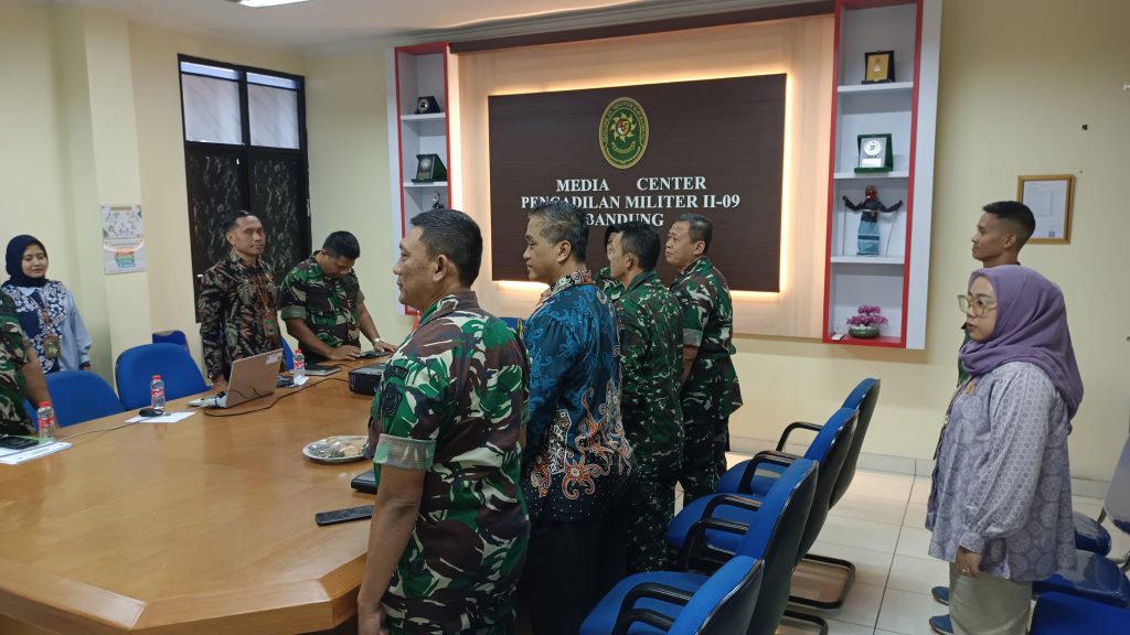 Plh Wakil Kepala Pengadilan Militer II-09 Bandung beserta Para Anggota Pokkimmil, Panitera, Sekretaris, para Kasubbag, dan Pelaksana pada Pengadilan Militer II-09 Bandung mengikuti acara Pembekalan Tahap V Sistem Manajemen Anti Penyuapan (SMAP) tahun 2025 oleh Badan Pengawasan mahkamah Agung Republik Indonesia secara daring pada Pukul 13.30 WIB di Ruang Media Center Pengadilan Militer II-09 Bandung.
