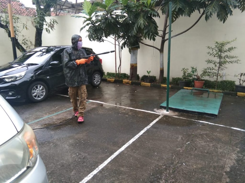 PENYEMPROTAN DISINFEKTAN DI KANTOR DILMIL II-09 BANDUNG OLEH DINKES KOTA BANDUNG