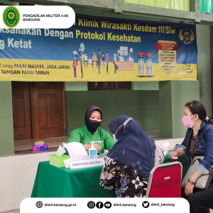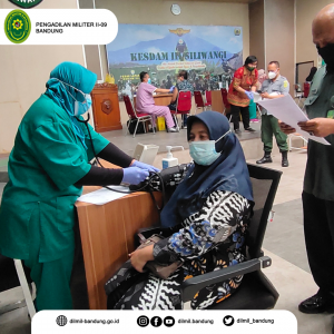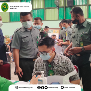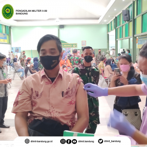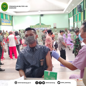 (Bandung) Sehubungan dengan lanjutan vaksinasi covid-19 ke-2 bagi ASN dan PPNPN yang telah melakukan vaksinasi ke-1 pada tanggal 26 April 2021. Pada hari ini, Jumat, Tanggal 21 Mei 2021, dilaksanakan kembali vaksinasi ke-2 bagi ASN dan PPNPN Pengadilan Militer II-09 Bandung yang bertempat di Aula Makesdam III/Slw, Jl. Ambon No.7, Citarum, Kec. Bandung Wetan, Kota Bandung, Jawa Barat 40115.